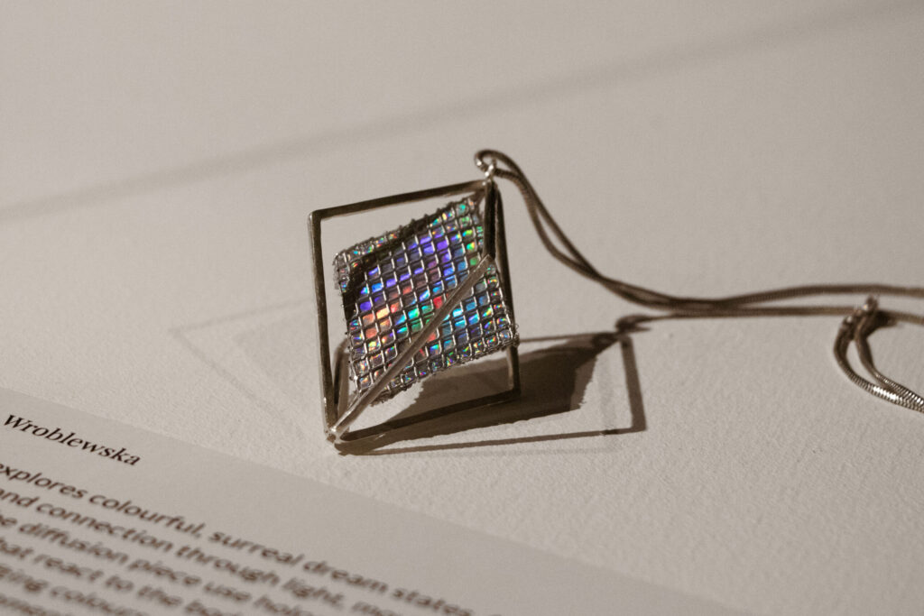 With changeable jewellery designs influenced by concepts ranging from the dynamics of friendship to the frailty of emotional connection, each performance examined the relationship between jewellery and movement. To accompany the journey of movement and adornment, BAJ students also created ‘diffusion’ pieces – a secondary piece of wearable jewellery that continued the theme of their project. The show was a one-of-a-kind production that examined jewellery as a component of living artwork rather than just as an accessory.